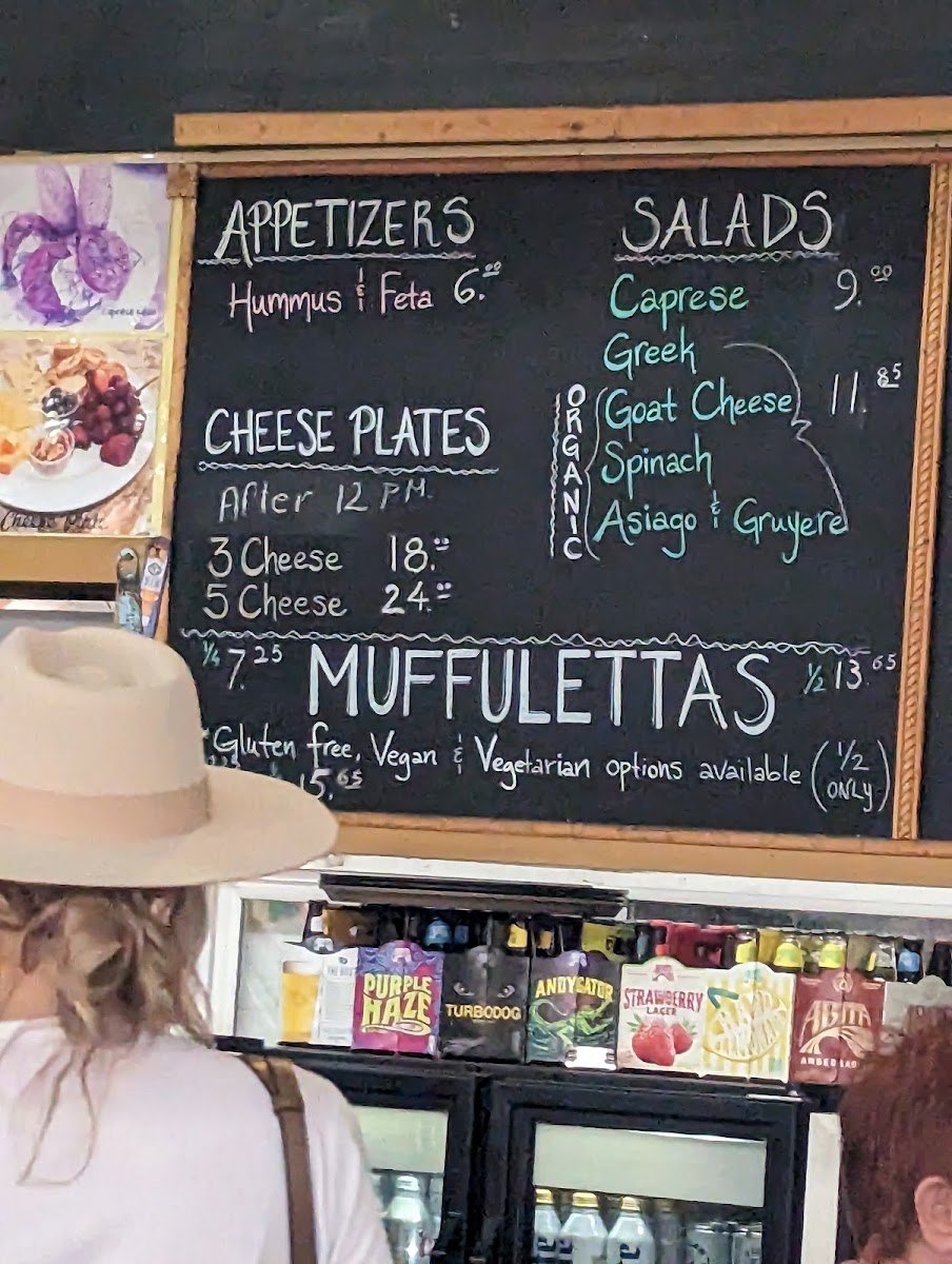 A healthy serving of sauteed mushrooms, onions, bell and roasted red peppers, and vegan provolone cheese on po'boy bread.